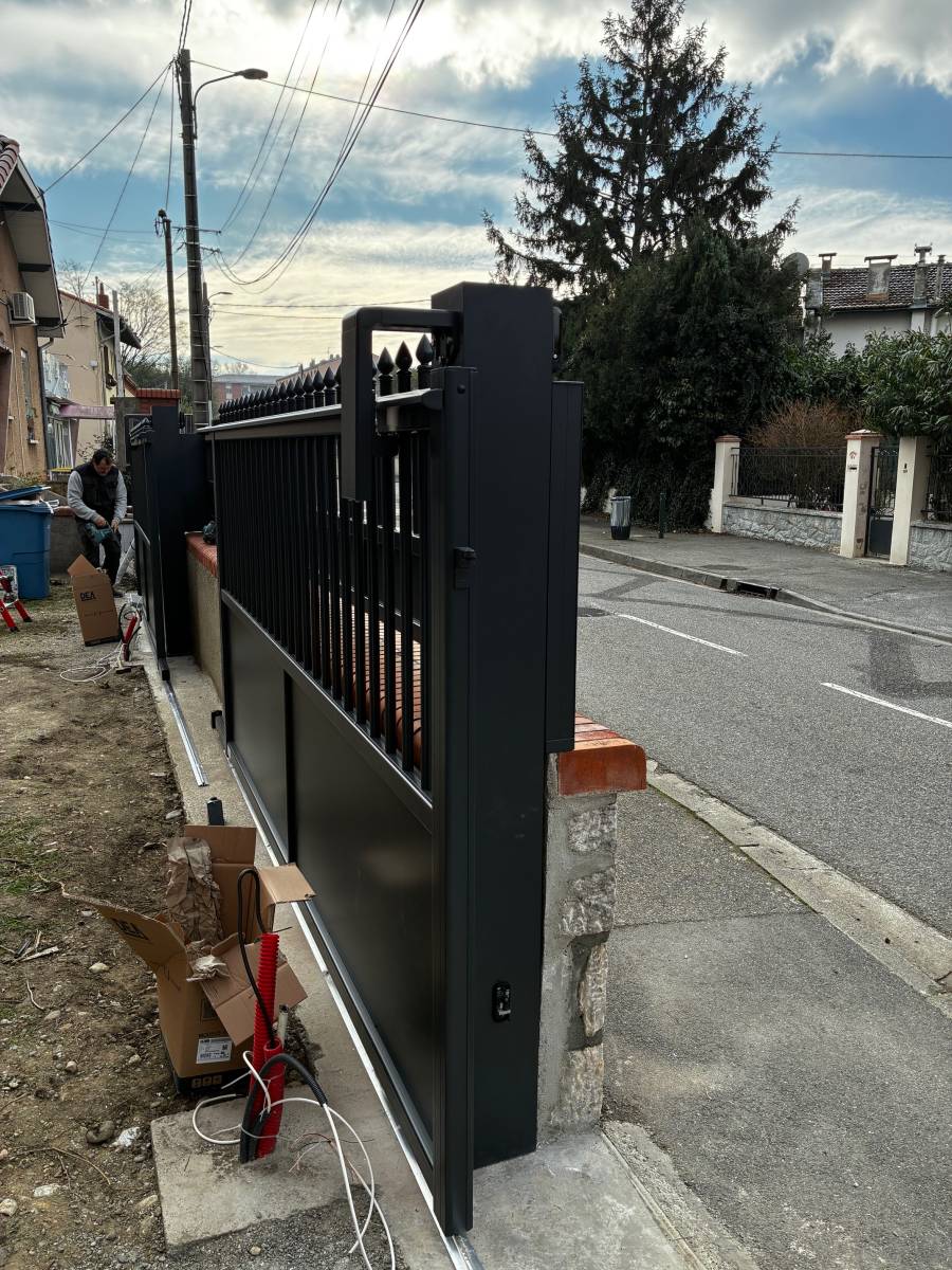 Sur ce chantier, nos clients ont opté pour un portail coulissant en aluminium sur Toulouse, parfaitement adapté à leur configuration extérieure. Ce type de portail sur mesure est particulièrement recommandé lorsque l’espace de dégagement est limité.