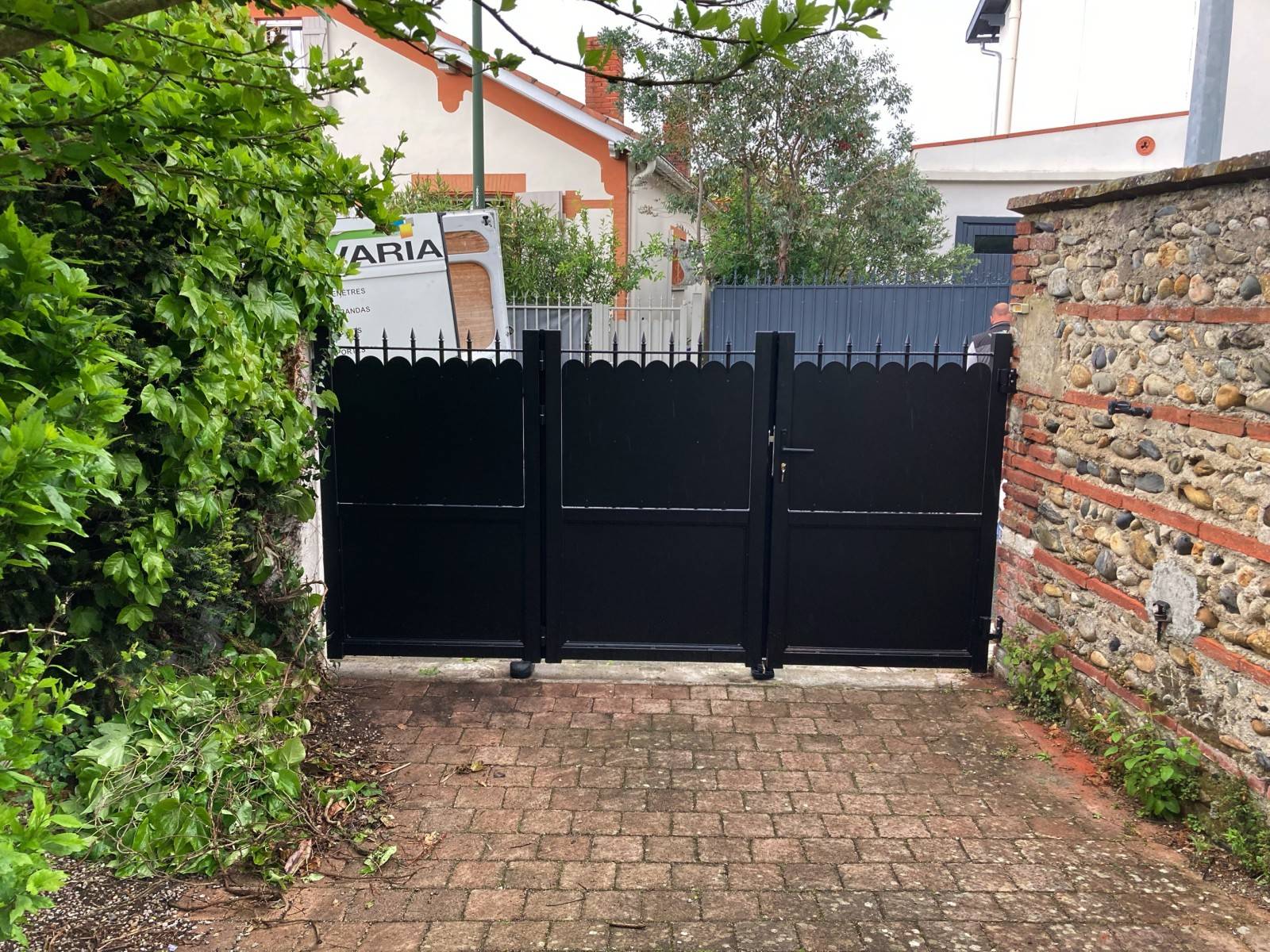 Portail fabriqué sur mesure pour ces clients qui avaient un soucis d’encombrement intérieur.